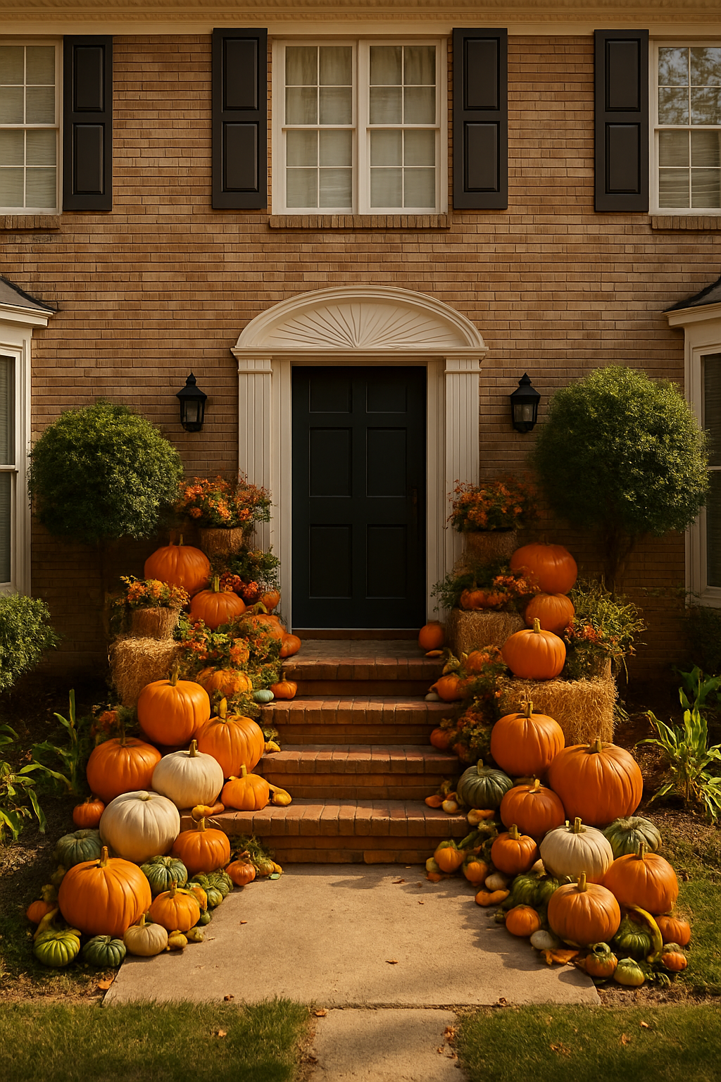 A vibrant mix of pumpkins and textures for picture-perfect curb appeal.